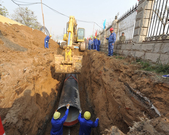 球墨鑄鐵管安裝埋設深度要達標:設計溝槽底寬一般為管外徑加0.5米,并根據土質狀況,確定開挖坡度(i),繪制溝槽剖視圖。管道的埋設深度應根據冰凍程度、外部荷載與其它管道交叉等因素確定。在一般情況下,埋設深度可在冰凍線以下0.2米處,并符合如下條件:當管徑大于100mm時,管頂最小埋深為1.20米。 1.溝槽開挖 溝槽底寬應按下式計:B=D1+2(b1+b2) 式中:B—管道溝槽底部的開挖寬度(mm) D1—管道結構的外緣寬度(mm) b1—管道一側的工作面寬度(mm) b2—管道一側的支撐寬度(mm) 2.溝槽支撐 根據溝槽土質、地下水、開槽斷面、荷載條件等因素進行設計,要求牢固可靠,防止塌方、支撐不得妨礙下管和穩管。 3.T型接口管道在垂直或水平方向轉彎處應設支墩。應根據管徑、轉角、工作壓力等因素經計算確定支墩尺寸。 4.輸送生活飲用水時,管道不應穿過毒物污染區,如必須穿過時應采取防護措施。 5.凡承插連接的球墨鑄鐵管線,必須經計算設支墩,參見國家建筑標 準設計圖集03SS505《柔性接口給水管道支墩》。 6.球墨鑄鐵管的外防腐蝕涂層應根據敷管地的土質情況來選擇鍍鋅和環氧瀝青涂層或更高要求的涂層。 7. 管道安裝完、試壓合格后,宜用低氯離子水沖洗和0.03%高錳酸鉀水溶液消毒。 在城市供水工程中,供水管線的造價在整個供水工程中所占的投資比較大,約占整個供水工程總造價的50~70%。因此,選擇合適的管材及良好的施工質量,是保證城市供水管網安全運行的根本保證。球墨鑄鐵管具有鐵的本質、鋼的性能,防腐性能優異、延展性能好,安裝簡易、主要用于市政、工礦企業給水、輸氣等。球墨鑄鐵管執行標準GB/T13295-2008 ISO2531/2008。
